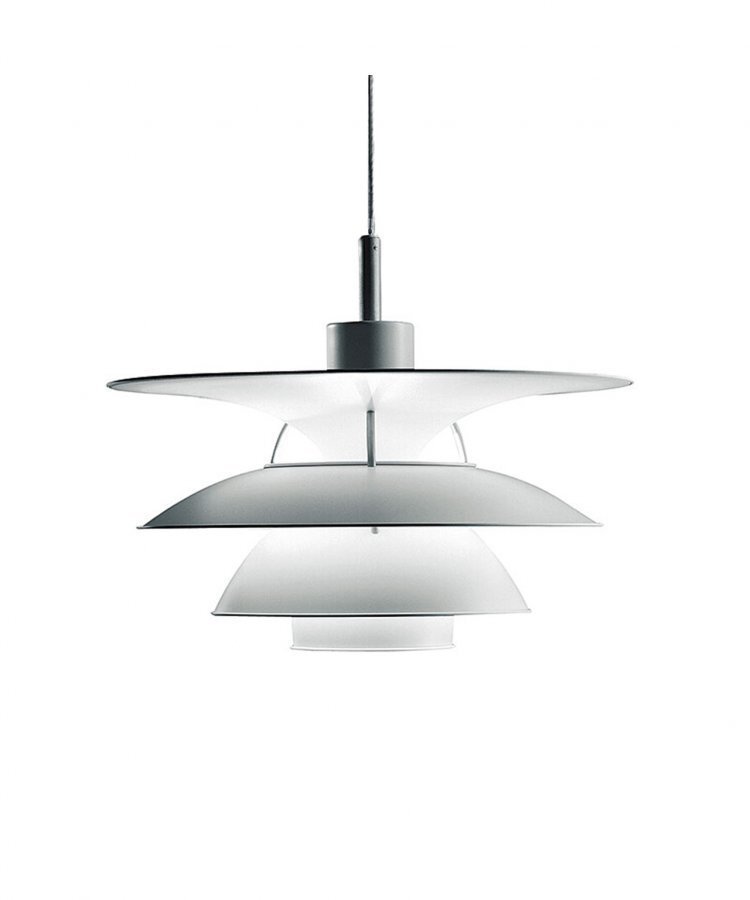 Design: Ebbe Christensen & Sophus Frandsen, Poul Henningsen for Louis Poulsen. Konsepti: Poul Henningsen loi kolmevarjostimisen valaisimen vuosina 1925-1926, jolloin hän yhdessä Louis Poulsenin kanssa suunnitteli ensimmäiset valaisimet Pariisissa järjestettyyn näyttelyyn. Läpi koko elämänsä PH pyrki luomaan häikäisemättömän ja pehmeitä varjoja tuottavan valon, joka voidaan suunnata minne tahansa, missä sitä tarvitaan. Vuonna 1931 julkistettiin nelivarjostiminen järjestelmä, jotta voitiin tehdä korkealle asennettavia valaisimia, jotka toimivat yleisesti käytettyjen kattokruunujen vaihtoehtona. PH:n nelivarjostiminen valaisin valmistettiin tuottamaan enemmän vaakasuoraa valoa, jotta seinät ja hyllyt saadaan valaistua tavallista kolmivarjostimista valaisinta tehokkaammin. Valaisin jäi pois Louis Poulsenin valikoimasta 1940-luvulla, mutta uudelleen suunniteltiin kahden tanskalaisen arkkitehdin (Sophus Frandsen ja Ebbe Christensen) toimesta uudelleen vuonna 1979 näyttelyrakennus Charlottenborgiin Kööpenhaminaan. Uudelleen suunniteltuna valaisimesta tuli suurempi: PH 6 ½/6. Vuonna 1984 suunniteltiin tämä pienempi PH 5/4½ Århusin musiikkitaloon.