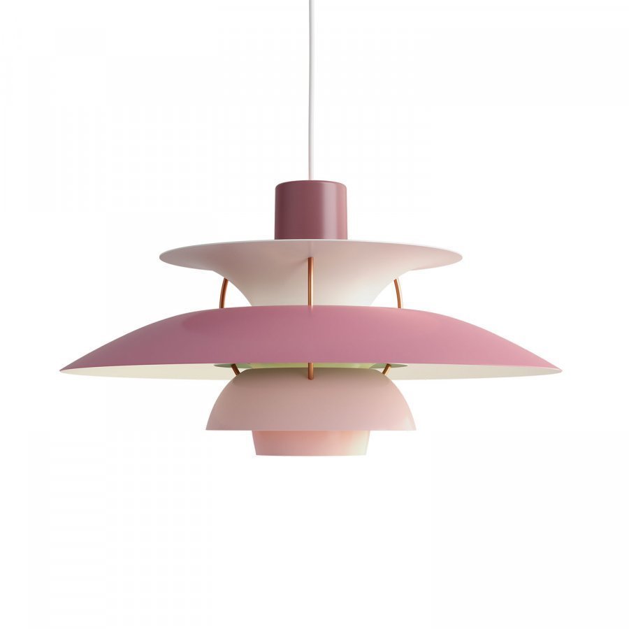 PH 5-kattolamppu Louis Poulsenilta, suunnittelu Poul Henningsen. PH 5-kattolamppu on suunniteltu häikäisemättömäksi ja sen muotoilu perustuu logaritmisen spiraalin muotoon, jonka keskipiste on valonlähde. Varjostimen erityinen muoto varmistaa, että valo jakaantuu niin pysty- kuin vaakasuunnassakin. Sisin kartio on maalattu punaiseksi joka yhdistettynä pienen, sinisen reaktorin kanssa luo kauniin, lämpimän valon.