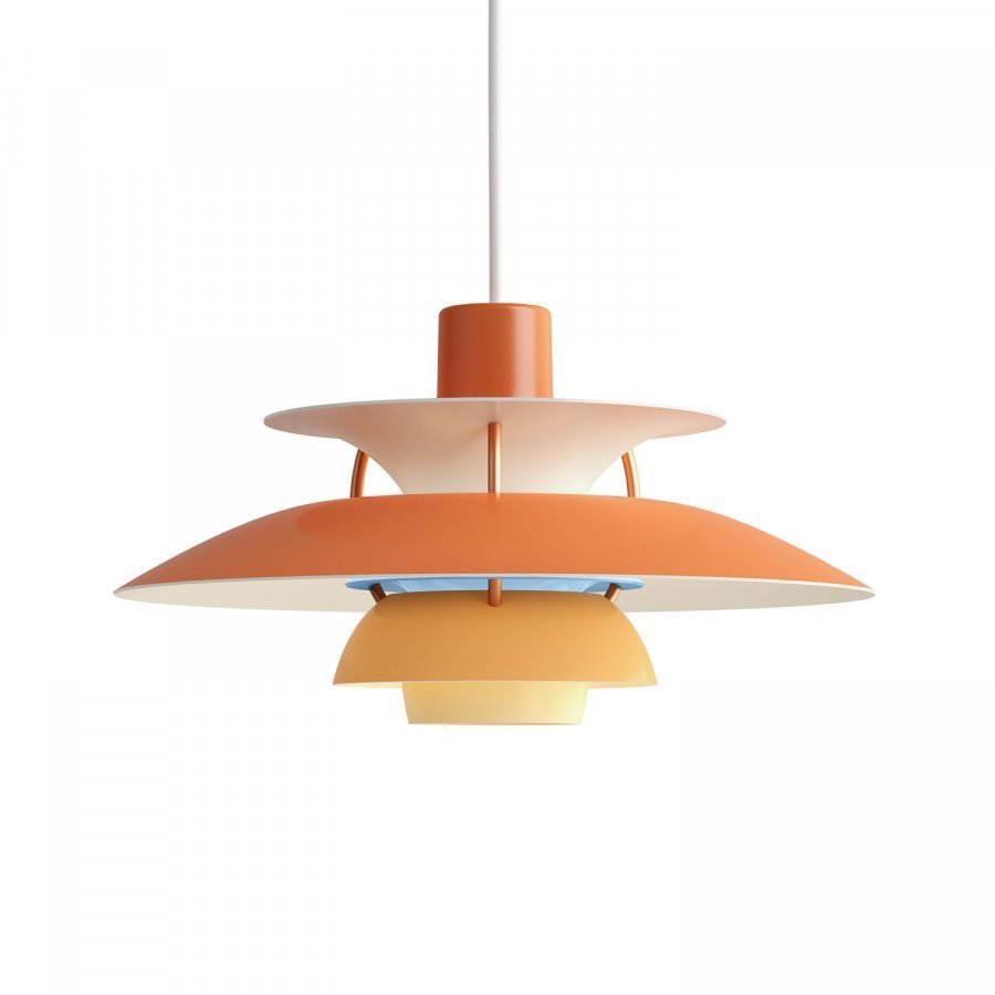 PH 5 mini-kattolamppu Louis Poulsenilta, suunnittelu Poul Henningsen. PH 5 mini-kattolamppu on suunniteltu häikäisemättömäksi ja sen muotoilu perustuu logaritmisen spiraalin muotoon, jonka keskipiste on valonlähde. Varjostimen erityinen muoto varmistaa, että valo jakaantuu niin pysty- kuin vaakasuunnassakin. Sisin kartio on maalattu punaiseksi joka yhdistettynä pienen, sinisen reaktorin kanssa luo kauniin, lämpimän valon.