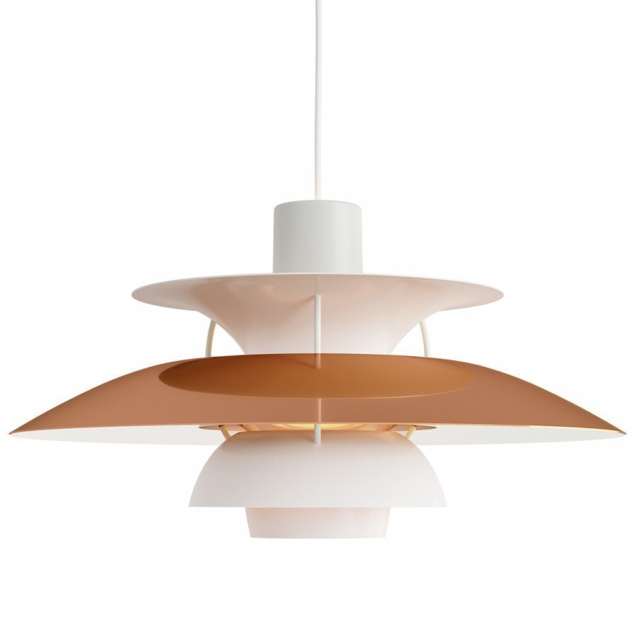 Poul Henningsenin suunnitteleman PH 5 -riippuvalaisimen 60-vuotisjuhlan kunniaksi Louis Poulsen on julkaissut suosikkivalaisimen uusissa, valloittavissa väreissä. PH 5 -riippuvalaisimen juhlaversiossa yhdistyvät puhtaan valkoisen ja hehkuvan kuparin sävyt. Louis Poulsenin PH 5 on Poul Henningsenin suunnittelema riippuvalaisin, joka on saavuttanut suuren suosion ja design-ikonin aseman niin Tanskassa kuin maailmalla. Vuonna 1958 syntyneessä PH 5 -valaisimessa yhdistyvät elegantti muotokieli ja innovatiivinen rakenne: kauniit, kerrostetut varjostimet estävät häikäisyn kaikista kulmista ja luovat huoneeseen miellyttävän valaistuksen. Valon lämmin sävy syntyy valaisimen sisällä erityisen sinisen ja punaisen pinnan avulla. Klassikkovalaisimen nimi, PH 5, viittaa sekä suunnittelijaan että suurimman varjostimen halkaisijaan, joka on 50 cm. PH 5 -riippuvalaisin on parhaimmillaan aivan ruokapöydän yllä, mutta sopii myös korkeampiin tiloihin ja huoneisiin.