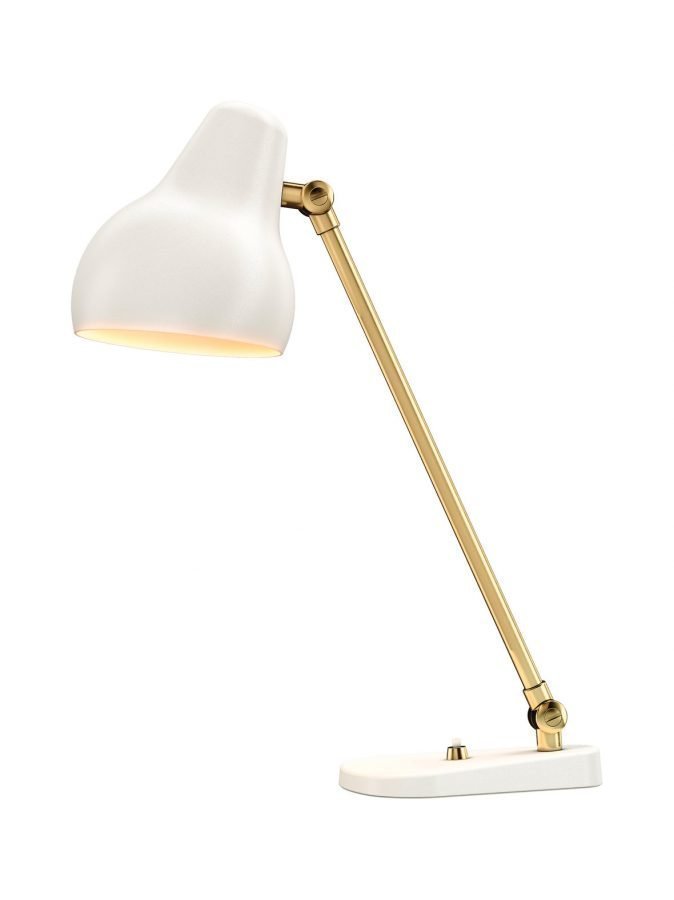 Pyöreämuotoinen LED-pöytävalaisin tuottaa alaspäin suuntautuvaa valoa. Varjostimen kulma voidaan nivelen avulla säätää sopivaksi, ja varjostimen valkoiseksi maalattu sisäpuoli takaa pehmeän ja miellyttävän valon. Valaisin on valmistettu alumiinista ja messingistä, ja sen johdossa on LED-liitäntälaite, joka liitetään pistorasiaan.Pöytävalaisimen on suunnitellut arkkitehti Vilhelm Lauritzen, joka tunnetaan tanskalaisen funktionalismin uranuurtajana.