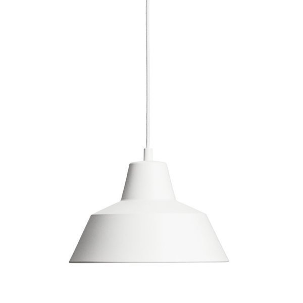 Made By Handin Workshop-riippuvalaisimessa toistuu sen esikuvan yksinkertainen, teollinen muotokieli. Tanskalainen A. Wedel-Madsen suunnitteli 1950-luvun alussa pelkistetyn riippuvalaisimen, joka korvasi verstailla ja työpajoilla käytetyt raskaat rautalamput. Kevyt ja kestävä alumiinivarjostin heijastaa ihanteellisen valon työskentelyyn, mutta minimalistinen valaisin on erinomainen valonlähde myös olohuoneeseen, ruokapöydän ylle sekä julkisiin tiloihin.