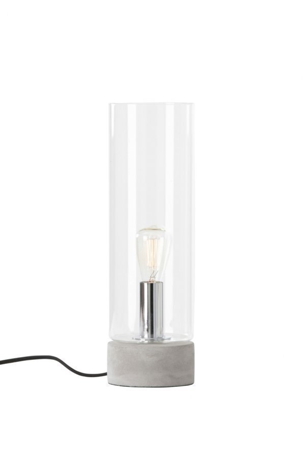 Kovan betonin ja hauraan lasin liitto tuo jännitettä huoneeseen. Eleganttia, mutta rohkeaa. Materiaali: Betonia ja lasia. Koko: Korkeus 35 cm, ø 11 cm. Kuvaus: Pöytävalaisin, jossa betonijalka. Varjostin lasia. Kierteinen, kangaspäällysteinen johto 200 cm. Sopii lampuille, joiden energialuokka on D–A++. Kanta/lamppu: 1 x E14, enintään 40 W:n hehkulamppu tai enintään 7 W:n energiansäästölamppu. Vinkki: Sopii yhtä hyvin pöydälle ja ikkunaan.
