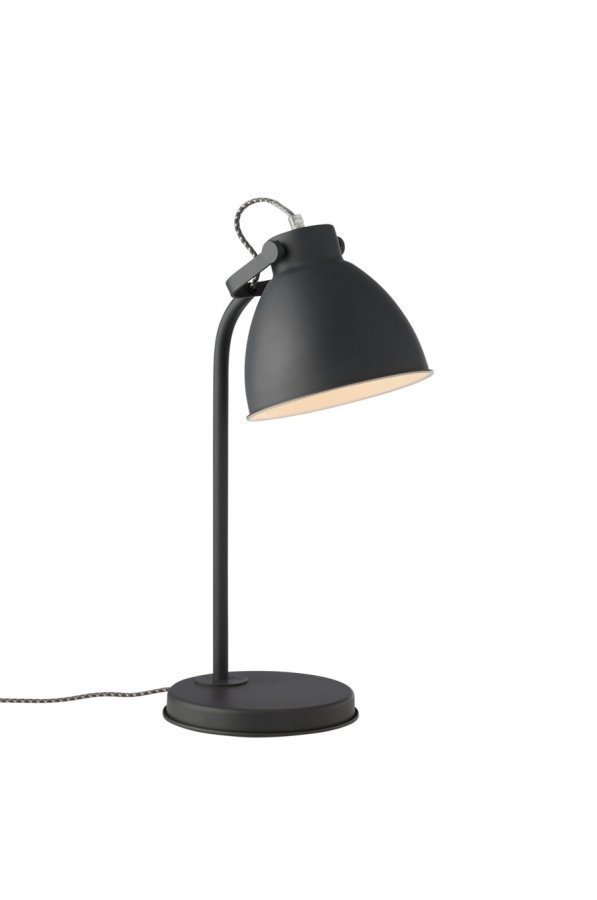 Teollis- ja retrohenkinen pöytävalaisin metallia. Kangaspäällysteinen, kuviokuosinen johto on tyylikäs yksityiskohta. Materiaali: Metallia. Koko: Korkeus 46 cm, varjostimen ø 17 cm, lampunjalan ø 18 cm. Kuvaus: Pöytävalaisin metallia. Säädettävä varjostin. Kangaspäällysteinen johto 150 cm. Kanta/lamppu: 1 x E14, enintään 40 W:n hehkulamppu tai enintään 11 W:n energiansäästölamppu. Vinkki: Huoneessa tuee olla 5–8 valaisinta, jotta valo jakautuu tasaisesti huoneeseen. Lue valaisinoppaan vinkit ja neuvot.