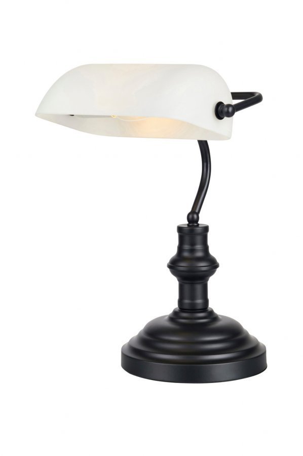 Bankers-pöytävalaisin. Klassinen Markslöjd-työpöytävalaisin. Jalka, jossa säädettävä lasi. Korkeus 37, leveys 27 cm. 2 m:n musta johto, jossa virtakytkin. Pieni lampunkanta E14, enintään 40 W:n hehkulamppu tai vastaava halogeeni-, energiansäästö- tai LED-lamppu. Valonlähde ei mukana.