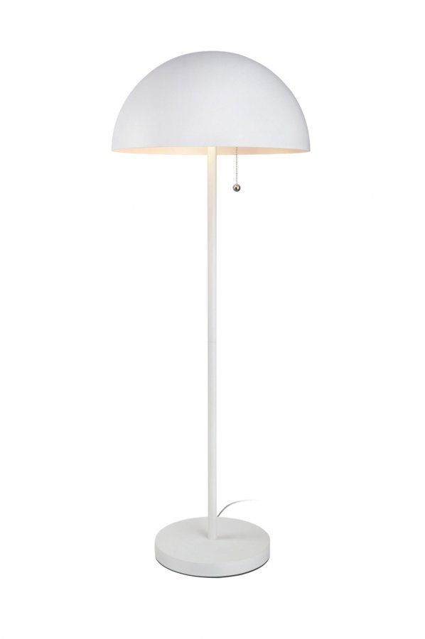 Markslöjd Bas -lattiavalaisin. 2 m:n johto. Virtakytkin varjostimessa. Iso lampunkanta E27, enintään 60 W:n hehkulamppu tai vastaava halogeeni-, energiansäästö- tai LED-lamppu.
