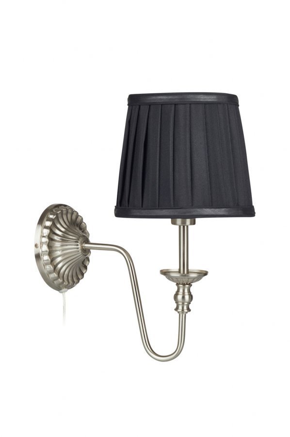 Markslöjd Bloomsbury -seinävalaisin. Metallinen seinäkiinnike ja kangasvarjostin. 2 m:n läpikuultava johto, jossa virtakytkin. Korkeus 28 cm, syvyys 32 cm, leveys 17 cm. Pieni lampunkanta E14. Enintään 40W hehkulamppu tai vastaava halogeeni-, energiansäästö- tai LED-lamppu. Valonlähde ei mukana.