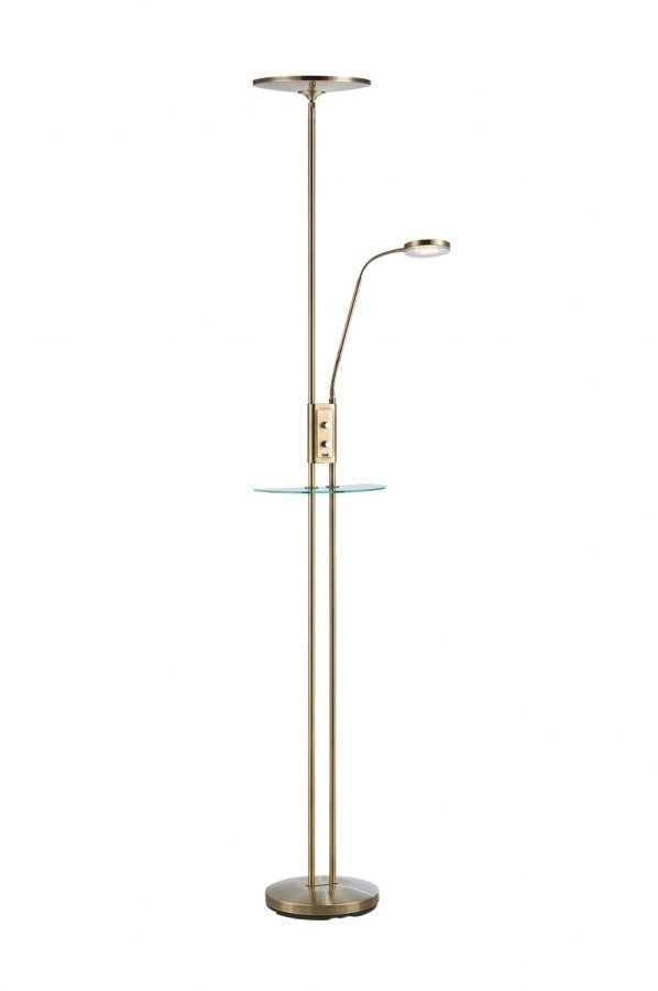 Himmennettävä Markslöjd Friend LED-lattiavalaisin. Ylöspäin suunnatun 18 W:n valaisimen valovirta 1 700 lumenia. 5 W:n LED-lukulamppu, jossa 400 lumenin valovirta. Erilliset himmentimet/katkaisimet. USB-liitäntä esimerkiksi puhelimen tai kameran latausta varten. 2 metrin pituinen musta johto, jossa muuntaja. Leveys 25,5 cm Korkeus 180 cm Syvyys 25,5 cm Teho 18 W + 5 W Lampunkanta LED