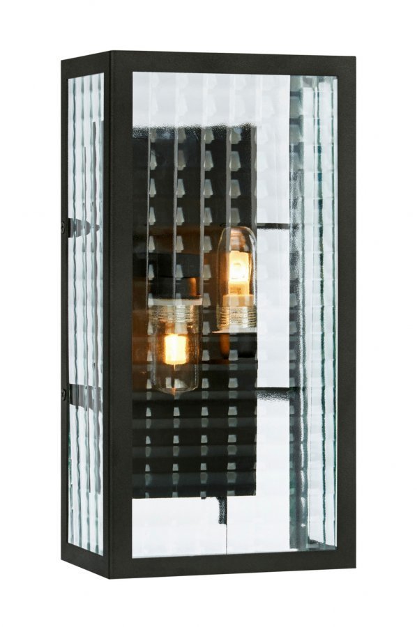 Markslöjd Fulham -seinävalaisin. IP44 hyväksytty kylpyhuoneeseen. Metallia ja lasia. Kaksi pientä lampunkantaa G9, enintään 28 W:n hehkulamppu tai vastaava halogeeni-, energiansäästö- tai LED-lamppu. Kiinteä, maadoitettu asennus. Valonlähteet mukana. Leveys 15,5 cm Korkeus 30 cm Syvyys 12 cm Teho 28 W Lampunkanta G9