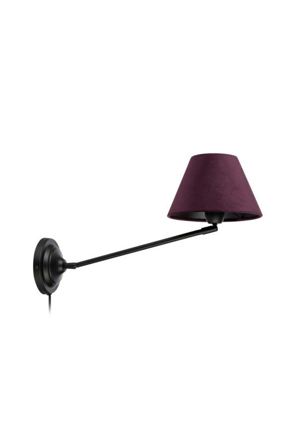 Markslöjd Garda -seinävalaisin. Runko metallia. Kääntyvä lampunjalka ja varjostin. Varjostin samettia. Leveys 20 cm, syvyys 32 cm. 2 m:n kangasjohto, jossa virtakytkin. Iso lampunkanta E27, enintään 60 W:n hehkulamppu tai vastaava halogeeni-, energiansäästö- tai LED-lamppu. Valonlähde ei mukana.