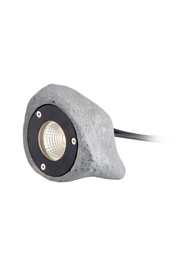 Garden 24 -kohdevalaisin aidonnäköistä kivijäljitelmää. Enintään 3 W. IP44, 30 cm:n johto. Leveys 14,5 cm, syvyys ja korkeus 11 cm.