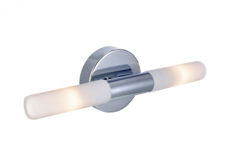 Seinämallinen kylpyhuonevalaisin, jonka leveys 32 cm, syvyys 10 cm ja korkeus 6,5 cm. Lampunkanta G9. IP44 kylpyhuoneeseen.