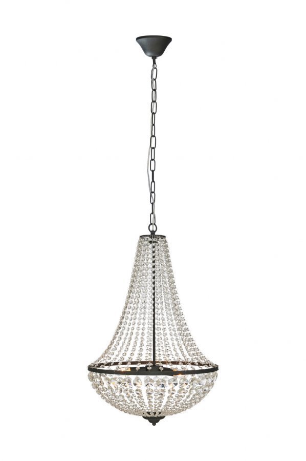 Markslöjd Gränsö -kristallikruunu. Mustaa metallia, kirkkaat prismat. Kolme valonlähdettä. Pienet lampunkannat E14, enintään 40 W:n hehkulamppu tai vastaava halogeeni-, energiansäästö- tai LED-lamppu. Kattokuppi ja ripustuskoukku. 1,5 m:n ketju. Lamput eivät mukana. Leveys 50 cm Korkeus 68 cm Syvyys 50 cm Teho 40 W Lampunkanta E14