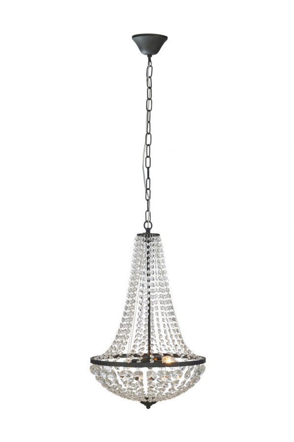 Markslöjd Gränsö -kristallikruunu. Mustaa metallia, kirkkaat prismat. 1,5 m:n ketju ja ripustuskoukku. Pienet lampunkannat E14, enintään 2 x 40 W:n hehkulamppu tai vastaava halogeeni-, energiansäästö- tai LED-lamppu. Lamput eivät mukana. Leveys 40 cm Korkeus 55 cm Syvyys 40 cm Teho 40 W Lampunkanta E14