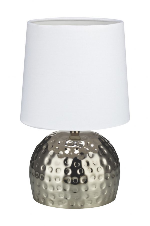 Pöytävalaisin, jonka leveys 14 cm, syvyys 14 cm ja korkeus 27 cm. Lampunkanta E14. Virtakytkin johdossa.