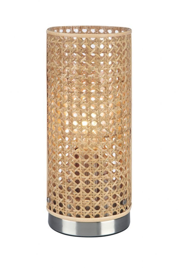 Markslöjd Hazienda -pöytävalaisin. Varjostin lasia ja bambua. 2 metrin pituinen kangaspäällysteinen johto, jossa virtakytkin. Iso lampunpidike (E27). Pituus 13 cm, leveys 13 cm, korkeus 30 cm. Lamppu ei mukana.