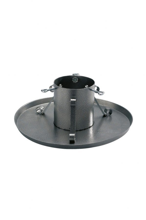 Joulukuusenjalka harmaata metallia. Sopii isolle kuuselle. Halkaisija 40 cm.