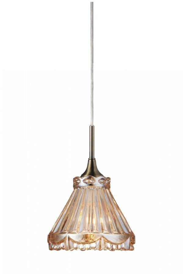 Mitat: leveys 15 cm, syvyys 22 cm, korkeus 15 cm. Kupu meripihkanväristä tai kirkasta lasia. Runko antiikkimessinginväristä tai teräksenväristä metallia. Virtakatkaisin johdossa, johdon pituus 3,5 m.