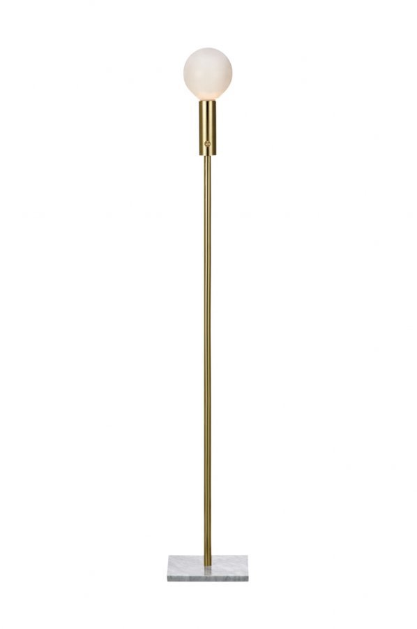 LampGustaf Marble -lattiavalaisin. Harjattua messinkiä, jalusta marmoria. Opaalinväristä lasia. Virtakytkimessä himmennin. Halogeeni 28 W, lampunkanta G9, adapteri E27.