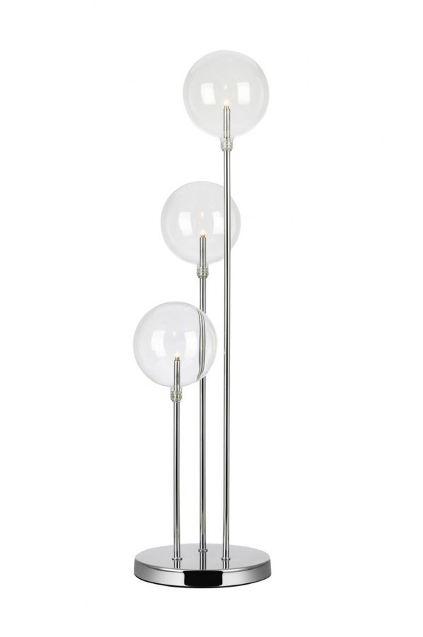 Mäster-sähkökynttelikkö lasia ja metallia. Korkeus 60 cm, Ø 16 cm. 3 x E5-lampunkanta. Enintään 0,8 W. 2 metrin pituinen johto, jossa virtakytkin ja plug-in-muunnin. Valonlähde mukana.