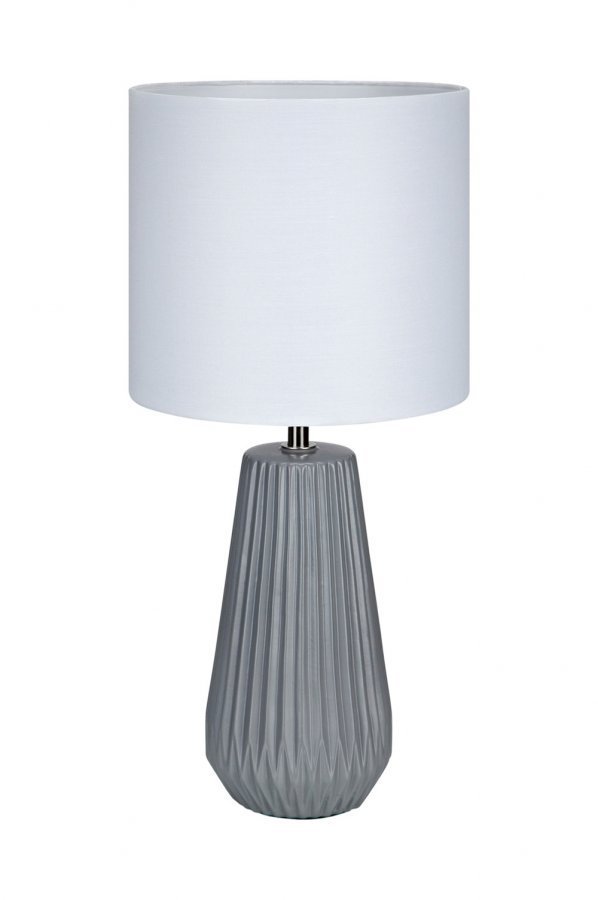 Markslöjd Nicci -pöytävalaisin keramiikkaa, varjostin kangasta. 2 metrin pituinen kangaspäällysteinen johto, jossa katkaisin. E14-lampunkanta halogeeni- tai LED-lampulle (ei mukana). Pituus 19 cm, leveys 19 cm, korkeus 41 cm.