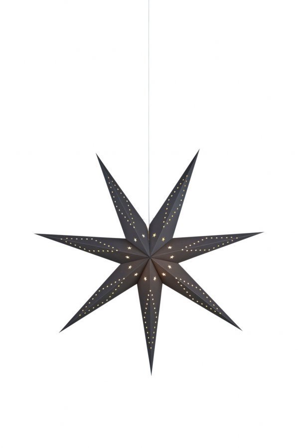 Riippuva Markslöjd Pallas -valotähti pahvia. Reikäkuvio. Mukana 3,5 metrin johto, jossa virtakytkin. Leveys 75, syvyys 16, korkeus 75 cm.