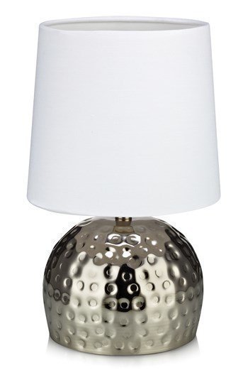Pöytävalaisin taotusta metallista, varjostin tekstiiliä. Läpikuultava johto jossa virtakytkin. E14 sokkeli. Maks. 40… Lue lisää »