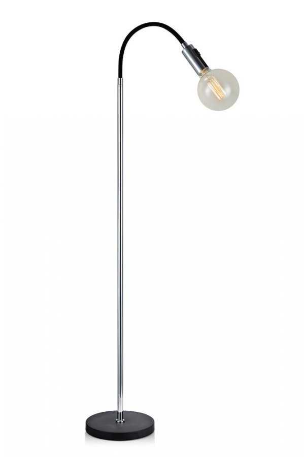 Markslöjd Rawe -lattiavalaisin kromia ja mustaa metallia. Säädettävä/käännettävä pää. 2 m:n pituinen johto. Virtakytkin lampunpidikkeessä. E27. Pituus 23 cm, leveys 38 cm, korkeus 132 cm.