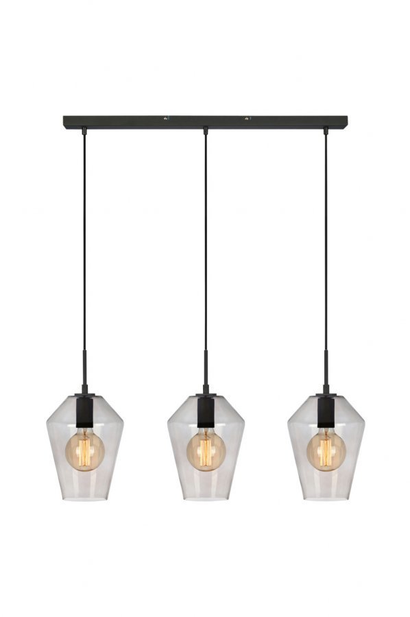 Markslöjd Retro -kattovalaisin. Savunväriset lasikuvut ja mustaa metallia. Kiinteä asennus kaariripustusjärjestelmällä. 1,5 m:n musta kangaspäällysteinen johto. Iso E27-lampunkanta. Enintään 60 W:n hehkulamppu tai vastaava halogeeni-, energiansäästö- tai LED-lamppu. Valonlähteet eivät mukana. Leveys 78,5 cm Korkeus 35,5 cm Syvyys 18,5 cm Teho 60 W Lampunkanta E27