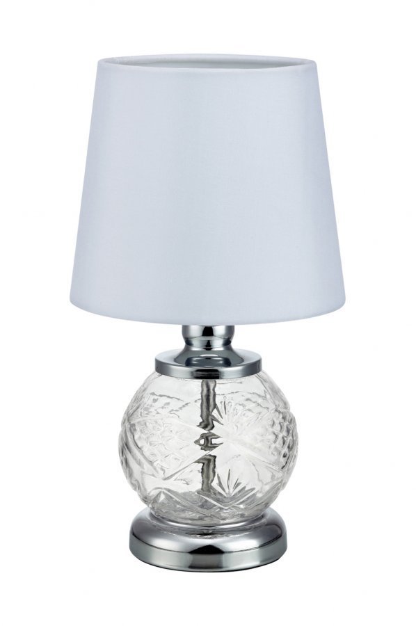 Markslöjd Salong -pöytävalaisin. Jalka lasia ja metallia, valkoinen kangasvarjostin. 2 m johto, jossa virtakytkin. Pieni lampunkanta E14. Enintään 40W hehkulamppu tai vastaava halogeeni-, energiansäästö- tai LED-lamppu. Lamppu ei sisälly toimitukseen. Leveys 18 cm Korkeus 32 cm. Syvyys 18 cm Teho 40 W Lampunkanta E14