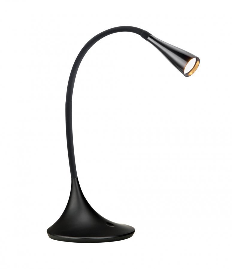 Pöytävalaisin, jonka leveys 17 cm, syvyys 30 cm, korkeus 42 cm. LED-lamppu. Taipuva varsi.