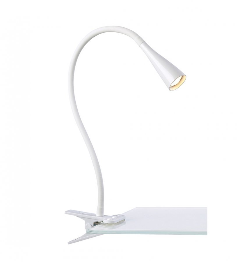 Pöytävalaisin nipistinkiinnityksellä. Leveys 8 cm, syvyys 33 cm, korkeus 40 cm. LED-lamppu. Taipuva varsi.
