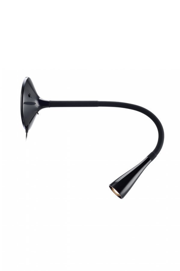 Seinävalaisin, jonka leveys 13 cm, syvyys 13 cm, korkeus 26 cm. LED-lamppu. Taipuva varsi.