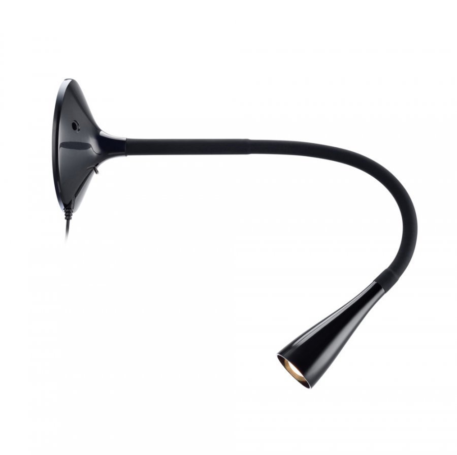 Seinävalaisin, jonka leveys 13 cm, syvyys 13 cm, korkeus 26 cm. LED-lamppu. Taipuva varsi.