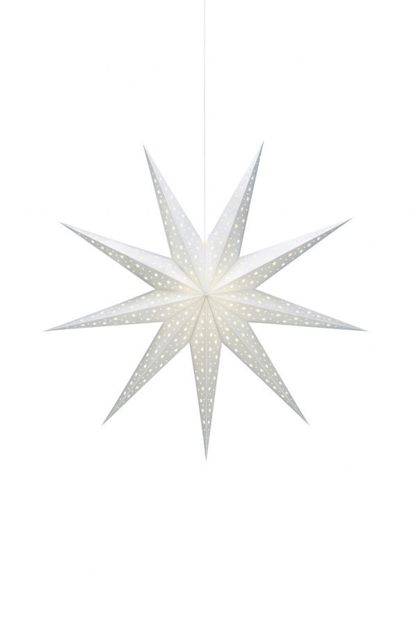 Solvalla-joulutähti. Ø 100 cm, syvyys 22,5 cm. E14-lampunkanta, enintään 25 W. Johdon pituus 3,5 m, virtakytkin.