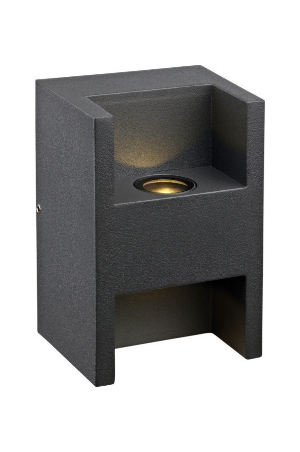 Markslöjd Throne -seinävalaisin ulkokäyttöön. IP44. Kiinteä asennus. Harmaaksi maalattua alumiinia. LED 1 W. 3000 K, lämpimän valkoinen valo. 240 lm. 120° valaistuskulma. Energialuokka A. Ei himmennettävä.