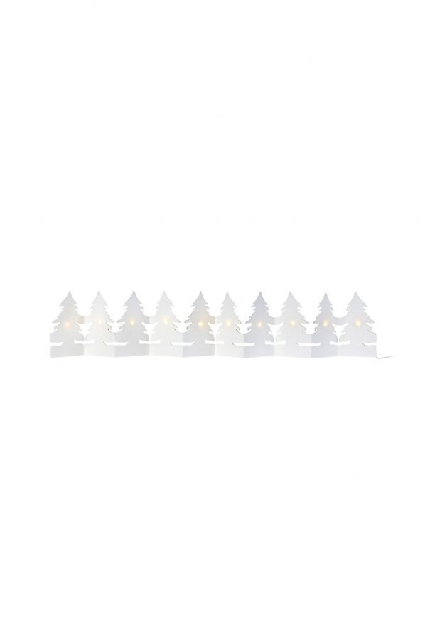 Markslöjd Nygården -pöytäkoriste. Pahvia, LED-valot. Toimii 3xAA-paristolla (eivät mukana). Leveys 110, syvyys 0,4, korkeus 17 cm.