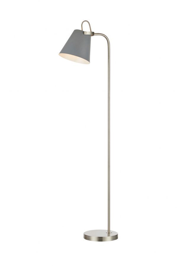 Markslöjd Tribe -lattiavalaisin. Runko ja varjostin metallia. Korkeus 137 cm, leveys 30 cm, syvyys 23 cm. 2 m:n kangasjohto. Iso lampunkanta E27, enintään 60 W:n hehkulamppu tai vastaava halogeeni-, energiansäästö- tai LED-lamppu. Valonlähde ei mukana.