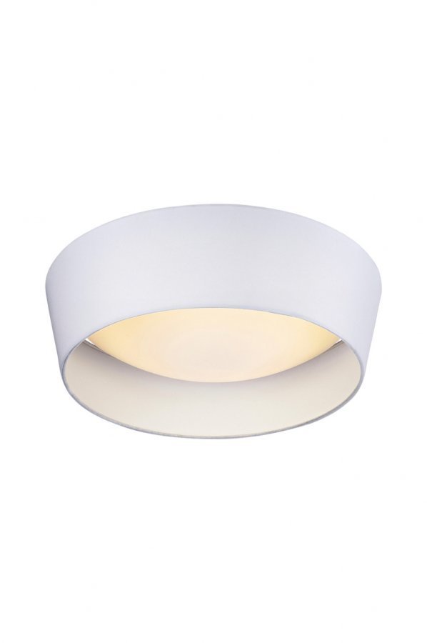 Markslöjd Vito -kattoplafondi. Kangasta ja akryyliä. Kaarikiinnike. 9W, LED. Pituus 39 cm, leveys 39 cm, korkeus 13 cm.