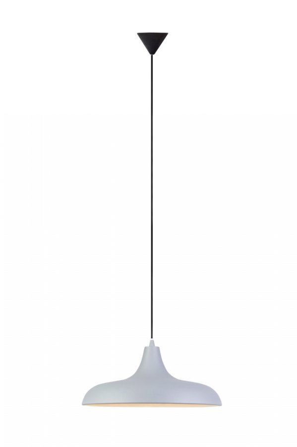 Kattovalaisin, jonka leveys 40 cm, syvyys 40 cm ja korkeus 17 cm. Lampunkanta E27. Kangaspäällysteinen johto 150 cm.