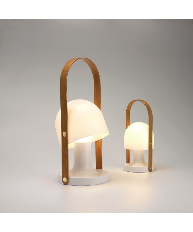 Design: Inma Bermúdez for Marset. Konsepti: Marsetin FollowMe Plus -pöytävalaisin on uskomattoman tyylikäs ja koristeellinen valaisin, jota voidaan käyttää useissa paikoissa. Voit käyttää valaisinta terassillasi myöhäisinä kesäöinä, tavallisena pöytävalaisimena tai pienenä valaisimena käytävällä. FollowMe Plus soveltuu mainiosti myös pehmeäksi valonlähteeksi lapsesi huoneeseen. Tai voithan aina käyttää sitä myös omassa huoneessasi – tämä valaisin on kannettavaa mallia. Tämä on ensimmäisen FollowMe -valaisimen suurempi versio, mutta se tarjoaa saman joustavuuden. Sisäänrakennettu akku ladataan USB-portin avulla joko mukana toimitettavalla kaapelilla tai 230V:n inverterilla, eli vaihtosuuntaajalla. Täydellä kapasiteetilla akun käyttöaika on 5 tuntia, mutta mukavalla tasolla sen tulisi kestää jopa 20 tuntia. Tämä on mahdollista LED-teknologian ansiosta, joka mahdollistaa valon himmentämisen, mikäli haluat luoda valolla kodikkaamman tunnelman – tai haluat sen vain yksinkertaisesti kestävän pidempään. Espanjalainen suunnittelija Inma Bermúdez löysi inspiraation FollowMe -valaisimeen omasta idyllisestä kotikaupungistaan Valencian ulkopuolelta. Hän inspiroitui nähdessään kanojen nukkuvan puissa. Inma ajatteli, että olisi hauskaa, jos he voisivat tuoda valaistuksen mukanaan – ja niinpä ideasta syntyi kannettava FollowMe valaisuratkaisu. Mattavalkoinen polykarbonaatista valmistettu lampunvarjostin on asennettu siten, että se sallii kallistuksen. Kahva on valmistettu tammesta, mikä toimii uskomattoman hyvin viileän, valkoisen lampunvarjostimen ja elegantin messinkisen kytkimen kanssa. Tämä tyylikäs valaisin soveltuu lukuisiin eri käyttötarkoituksiin.