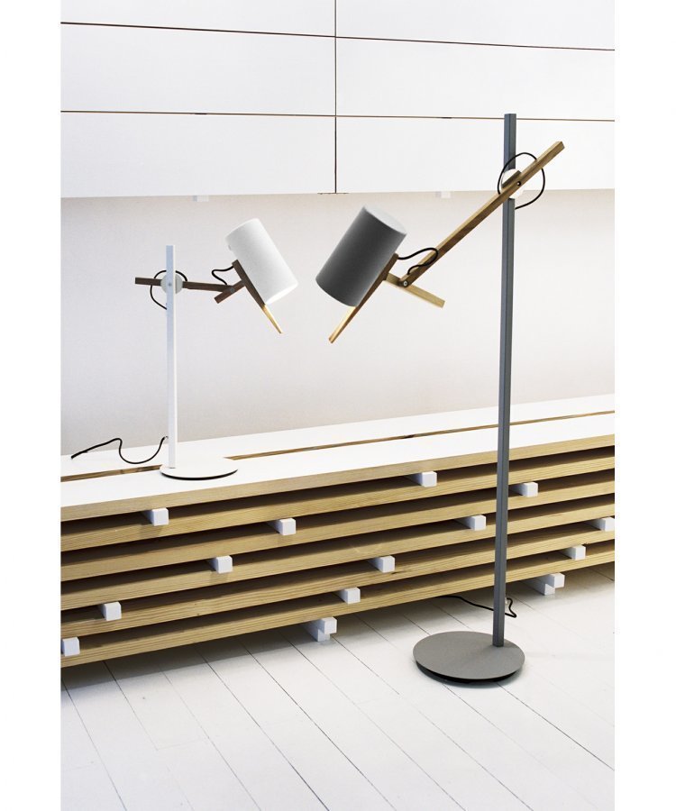 Design: Mathias Hahn for Marset. Konsepti: Marsetin harmaa ja tamminen Scantling on lattiavalaisin, jolla on suuri persoonallisuus. Valaisin on varusteltu kauniilla geometrisen muotoisella pohjalla, joka on luotu metallista ja tammesta. Scantling on uskomattoman joustava valaisin. Voit kääntää sitä juuri siihen suuntaan, kuin haluat valosi osoittavan.