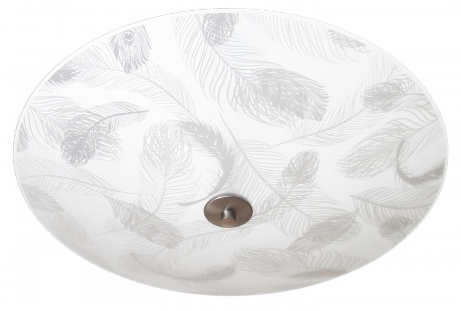 Anser-40 kattoplafondi on valmistettu etsatusta lasista, jota koristaa herkkä höyhen kuviointi. Lasi suodattaa valon kauniisti, antaen kuitenkin hyvin valoa tilaan. Valmiiksi asennetun pistokkeen ansiosta valaisin on helppo asentaa kattoon.