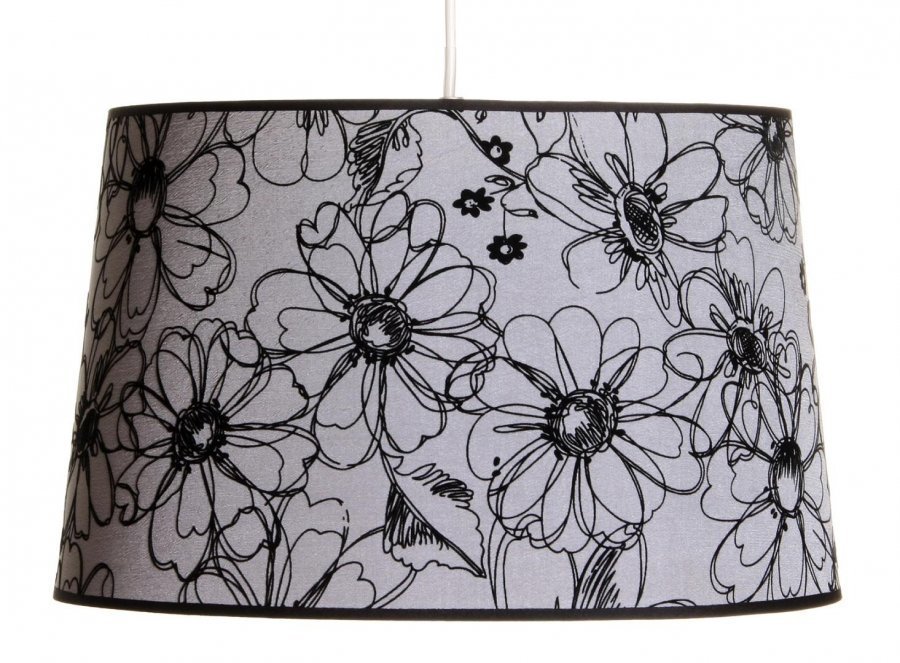 Perinteinen kangasvalaisin modernissa harmaassa värissä. Pelkistetty kukkakuvio on pirteä lisä valaisimeen. Valmiiksi asennetun pistokkeen ansiosta valaisin on helppo asentaa kattoon. Suuri kattokuppi, joka peittää koko kattopistorasian.