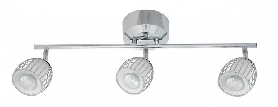 Moderni yhdistelmä valkoista lasia sekä kromia. 3-osainen valaisin valaisee suuremmankin tilan. Korotettu kattokuppi, kattokoukkukiinnitys sekä valmiiksi asennettu kattopistoke tekevät tämän valaisimen asentamisesta erittäin helppoa.