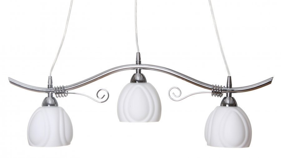 Rusko-3B-biljardivalaisimessa on tyylikäs kromirunko viehättävin kiehkura koristein. Pehmein lainekuvioin muotoiltu valkoinen lasikupu on miellyttävä vaihtoehto perinteiselle, suoralle lasille. Valaisimessa on valmiiksi kattopistotulppa, joka tekee asentamisesta helppoa. Valaisimen kattokuppi on tarpeeksi suuri peittämään koko kattopistorasian.