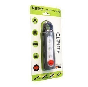 Nebo ClipLite Monitoimilamppussa Edessä High-power 25 Lumen LED – 10 tuntia / Näyttää jopa 15m päähän. päällä ja alla High-power 60 Lumen 14 tuntia / Näyttää jopa 10m päähän. Iskunkestävä ja roiskevedeltä suojattu.