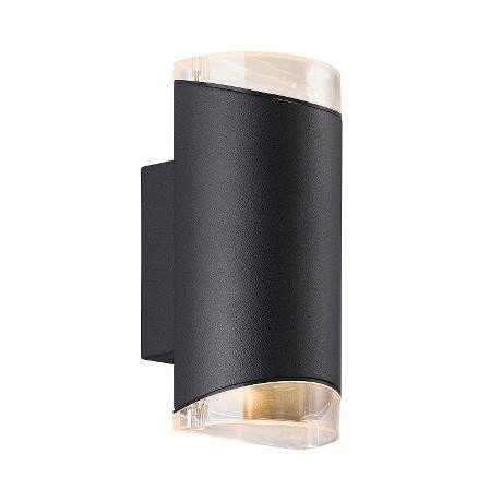 Ulkoseinävalaisin. Väri: musta. IP44. 2 x GU10, max 2 x28W, ei sisällä valonlähdettä.Materiaali: alumiini, polykarbonaatti. Korkeus: 22,5 cm, leveys: 11 cm, seinästä 10,6 cm. Energialuokka A++-D. Voidaan ketjuttaa.