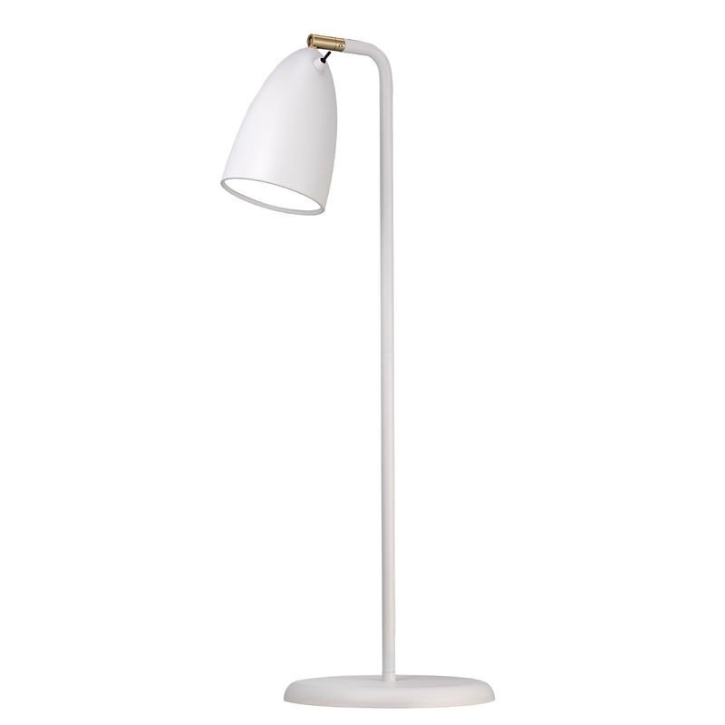 Pöytävalaisin. Väri: valkoinen/messinki.GU10 SMD LED sis. 3W lamppu. 220 lm.Säädettävä 90°. Materiaali: metalli, muovi. Korkeus: 63 cm, halkaisija: varjostin 10 cm, pohjalevy 20 cm.Designed by Bønnelycke mdd