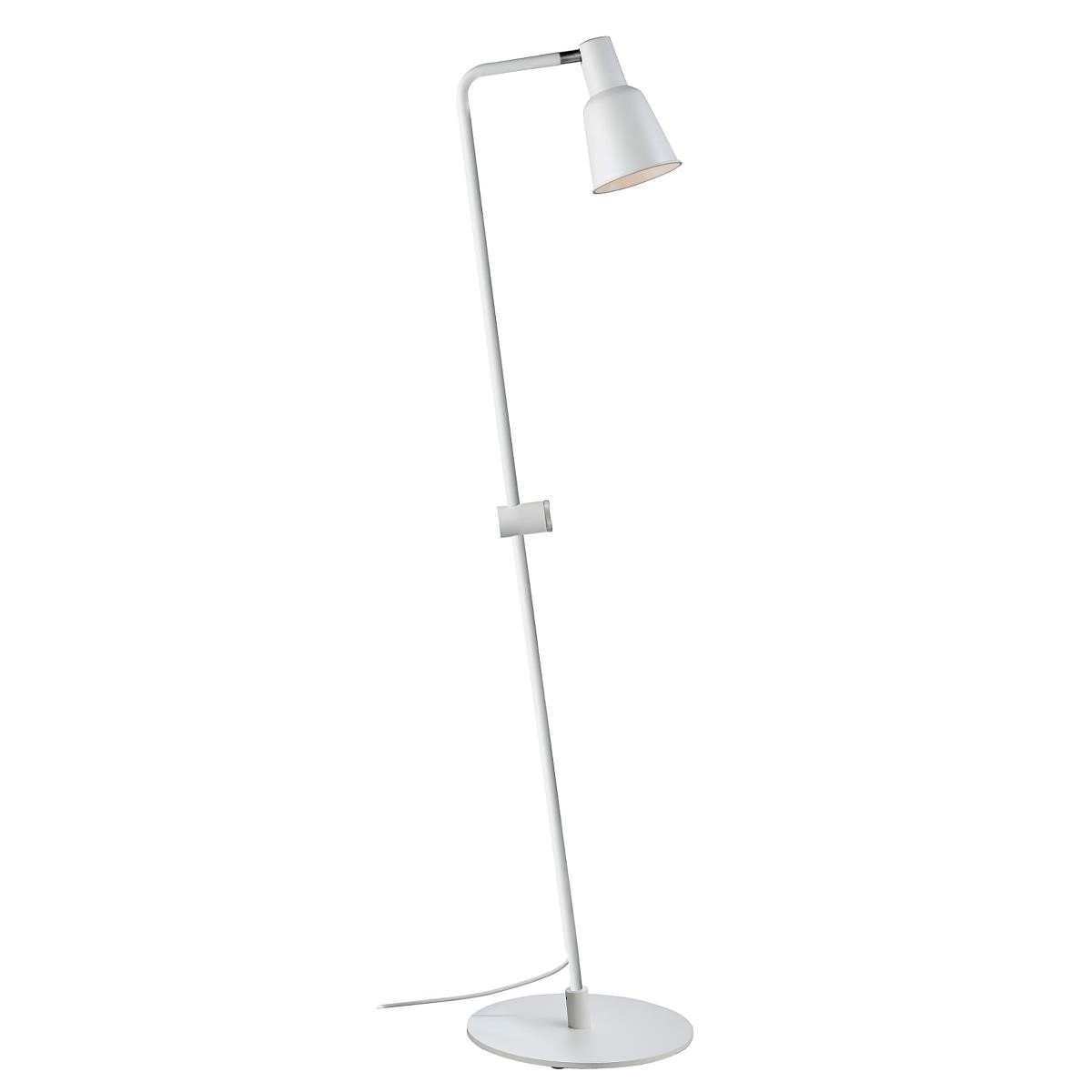 Lattiavalaisin. Väri: valkoinen.IP20. E27. max 15W LED. Sisältää himmentimen. Ei sis. valonlähdettä.Materiaali: metalli. Korkeus: 130 cm (jalan asentoa voi säätää), halkaisija: varjostin 12 cm/lattialaatta 32 cm, johto: 180 cm.Designed by Bønnelycke mdd